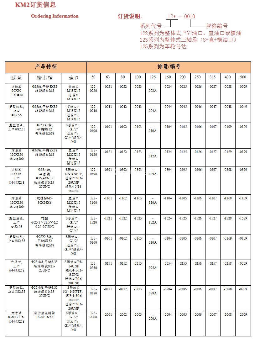 排量 (ml/r) | 50 | 63 | 80 | 100 | 125 | 160 | 200 | 250 | 315 | 400 | 500 | |