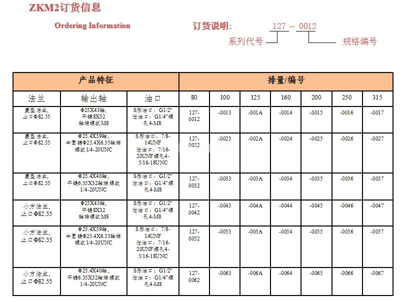 排量 | 80 | 100 | 125 | 160 | 200 | 250 | 315 |