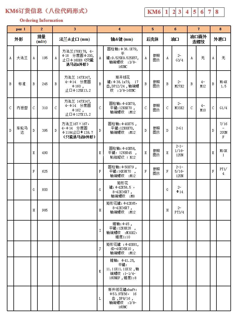 排量 (ml/r) | 195 | 245 | 310 | 395 | 490 | 625 | 800 | 985 | |