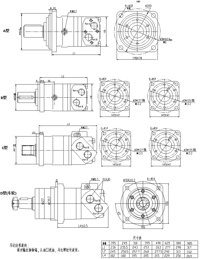 表中數(shù)據(jù)在使用68#抗磨液壓油,50℃ 油溫條件下測試的,不同馬達(dá)結(jié)果略有差別.