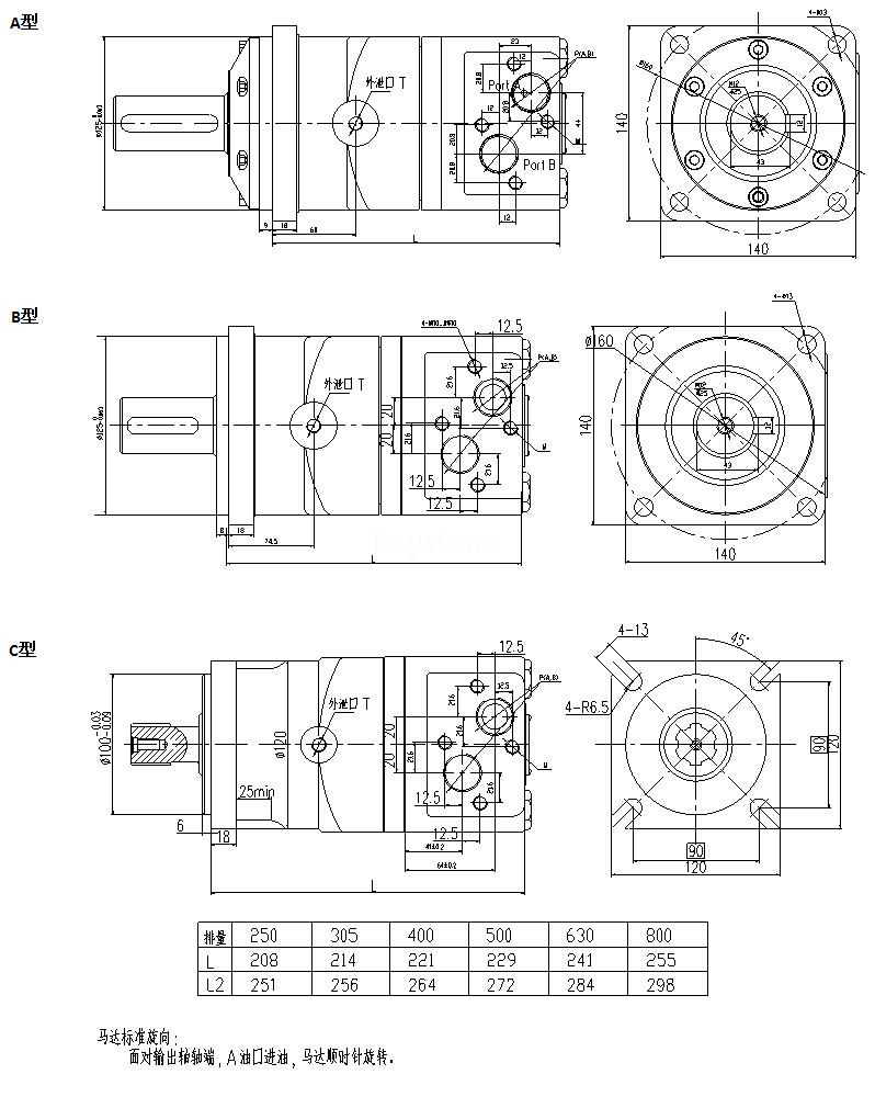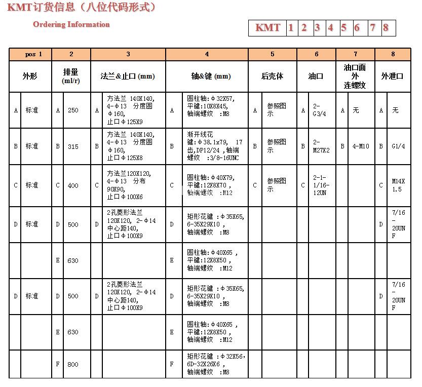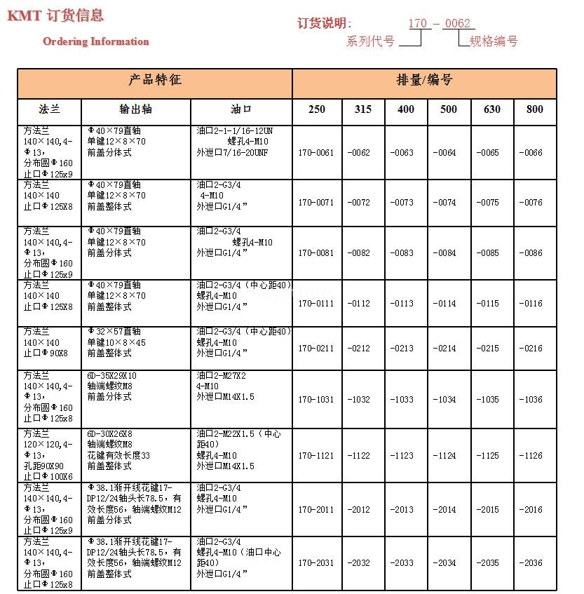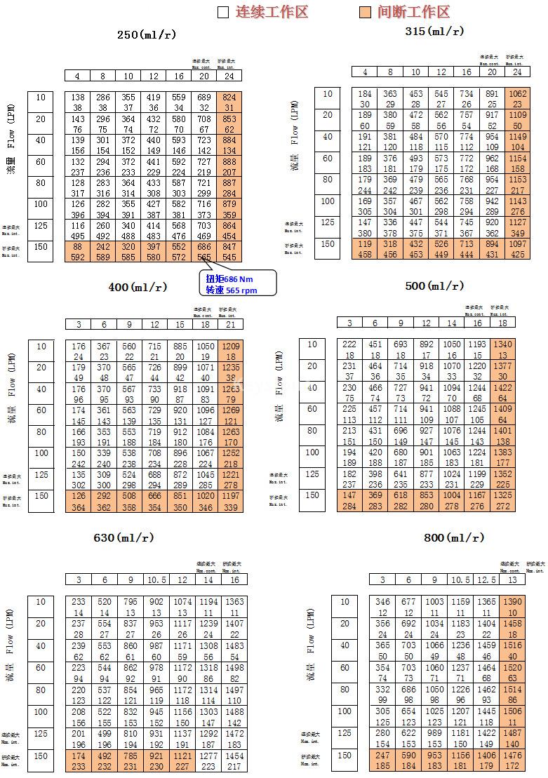 排量(ml/r) | 250 | 315 | 400 | 500 | 630 | 800 | |